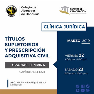 El Centro de Capacitación del Colegio de Abogados de Honduras recuerda a todos sus agremiados a nivel nacional que a partir del jueves 21 hasta el sábado 23 de este mes se realizarán diferentes capacitaciones en la sede central de la institución ubicada en Comayagüela y en los Capítulos de Tela, Atlántida; Gracias, Lempira y El Progreso, Yoro.