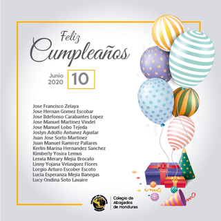 El Colegio de Abogados de Honduras (CAH) se complace en felicitar a todos nuestros agremiados en el día de su cumpleaños. Les deseamos muchas felicidades y que Dios bendiga sus vidas. FELICIDADES CUMPLEAÑEROS!!!