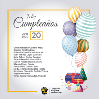 El Colegio de Abogados de Honduras (CAH) se complace en felicitar a todos nuestros agremiados en el día de su cumpleaños. Les deseamos muchas felicidades y que Dios bendiga sus vidas. FELICIDADES CUMPLEAÑEROS!!!