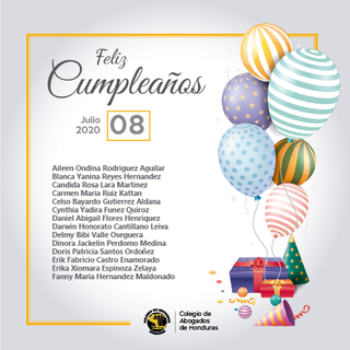 El Colegio de Abogados de Honduras (CAH) se complace en felicitar a todos nuestros agremiados en el día de su cumpleaños. Les deseamos muchas felicidades y que Dios bendiga sus vidas.