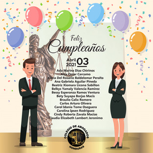 El Colegio de Abogados de Honduras (CAH) se complace en felicitar a todos nuestros agremiados en el día de su cumpleaños. Les deseamos muchas felicidades y que Dios bendiga sus vidas.