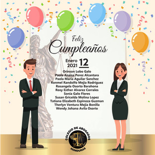 El Colegio de Abogados de Honduras (CAH) se complace en felicitar a todos nuestros agremiados en el día de su cumpleaños. Les deseamos muchas felicidades y que Dios bendiga sus vidas.