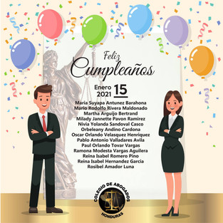 El Colegio de Abogados de Honduras (CAH) se complace en felicitar a todos nuestros agremiados en el día de su cumpleaños. Les deseamos muchas felicidades y que Dios bendiga sus vidas.