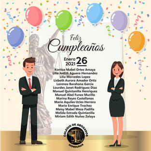 El Colegio de Abogados de Honduras (CAH) se complace en felicitar a todos nuestros agremiados en el día de su cumpleaños. Les deseamos muchas felicidades y que Dios bendiga sus vidas.