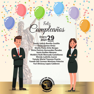 El Colegio de Abogados de Honduras (CAH) se complace en felicitar a todos nuestros agremiados en el día de su cumpleaños. Les deseamos muchas felicidades y que Dios bendiga sus vidas.