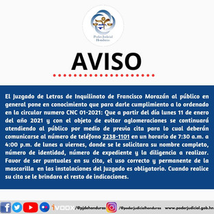 El Juzgado de Letras de INQUILINATO de #FRANCISCO MORAZAN, hace saber al público la siguiente información por medio de este aviso:
